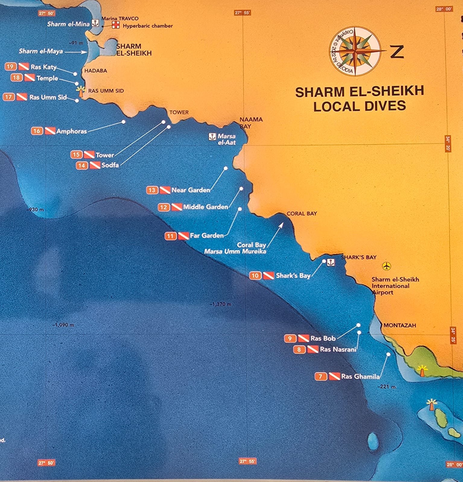 Sharm El Sheikh (Local) Open Water (OW) 18m Many excellent sites (e.g.,The Temple, Ras Umm Sid) offer ideal conditions for all levels, with shallow reefs and drop-offs that an OW diver can explore.